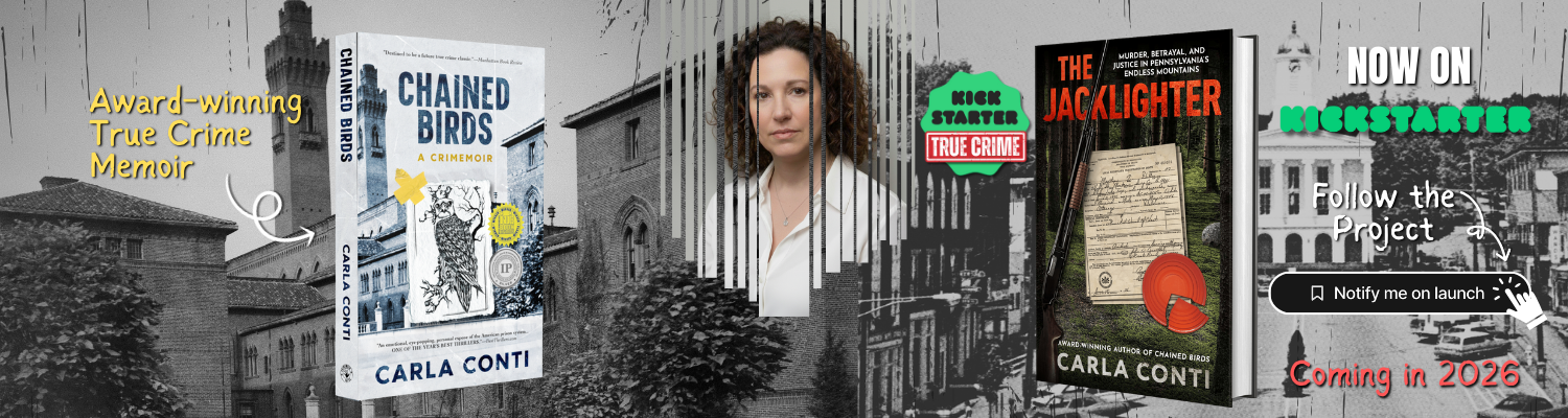 Carla Conti is a journalist and the award-winning author of Chained Birds: A Crimemoir. Her next true crime book, The Jacklighter, is set for release in 2026. She lives in Pennsylvania with her husband, who supports her true crime habit.