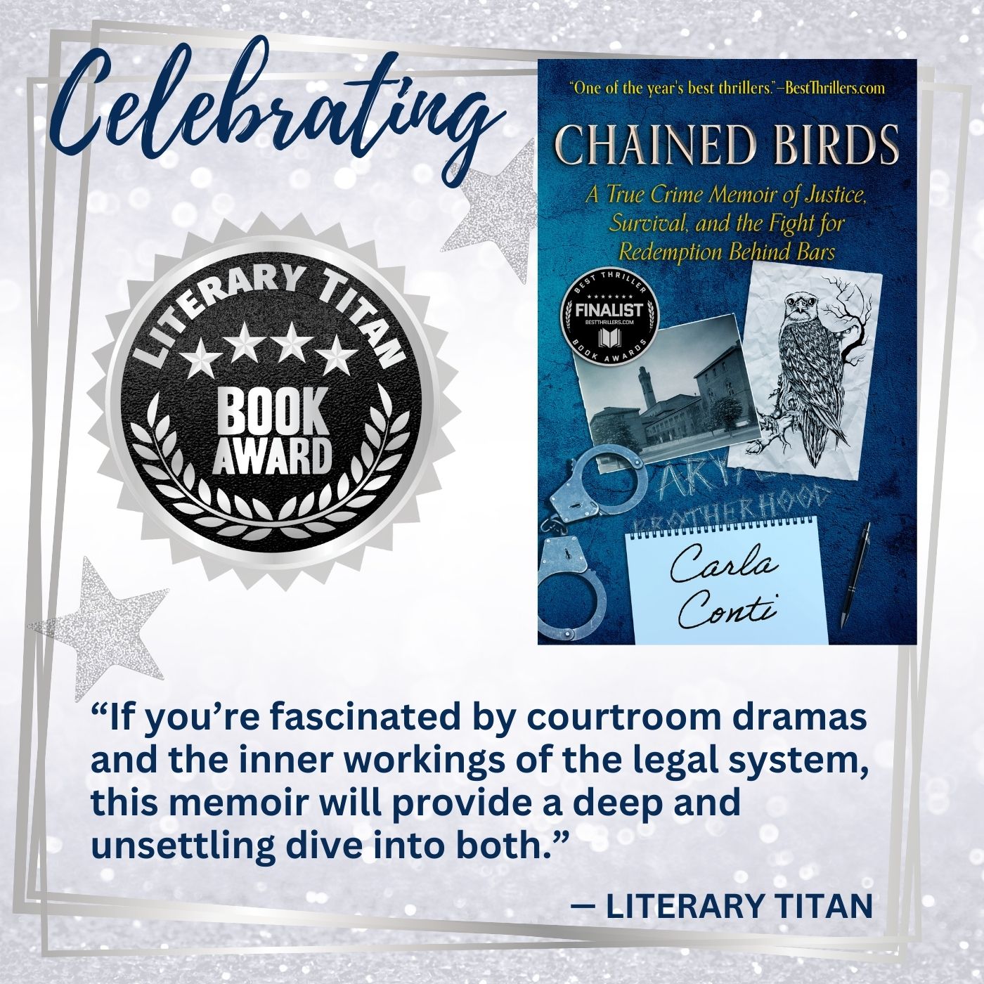 And just when I thought I had all my breaking news lined up to share about Chained Birds, Literary Titan let me know my book was a December 2024 Silver Book Award winner.