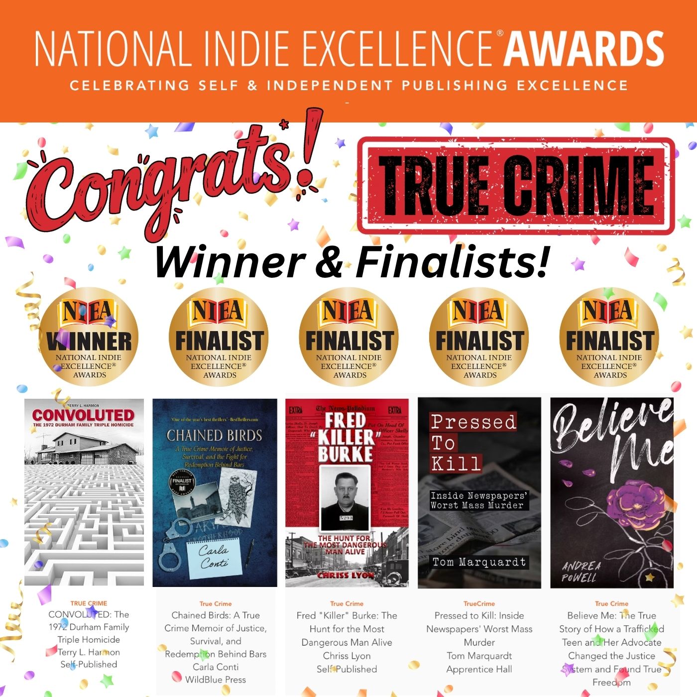 This recognition is especially meaningful to me because of NIEA’s commitment to amplifying unique and diverse voices that might not otherwise find a spotlight in mainstream publishing. To have Chained Birds stand out in the True Crime category among so many talented authors is deeply humbling.