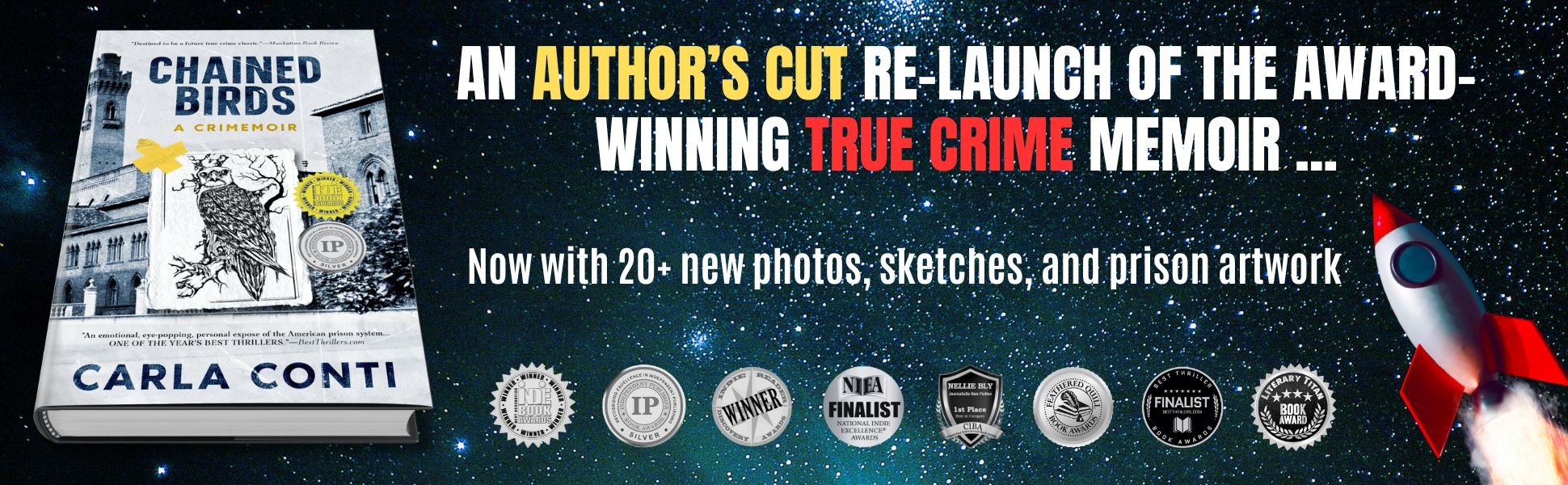 I’m excited to announce the launch of my own imprints, Crimemoir Press and Crimemoir Audio, created to re-publish Chained Birds: A Crimemoir as well as my future books. Fun fact: In the summer of 2025, I got the rights back from the book’s original publisher, WildBlue Press, which means I’ve gone from trad-pub to indie-pub, and I couldn’t be happier.