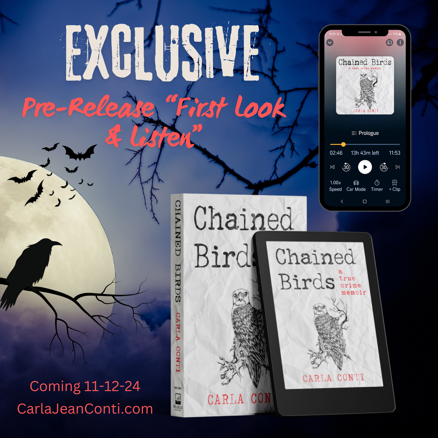 Carla Conti is a journalist and the award-winning author of Chained Birds: A Crimemoir. Her next true crime book, The Jacklighter, is set for release in 2026. She lives in Pennsylvania with her husband, who supports her true crime habit.