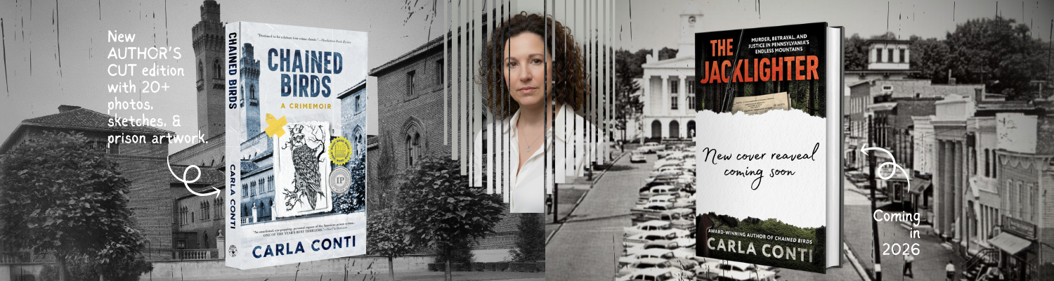 Carla Conti is a former journalist and the award-winning author of Chained Birds: A Crimemoir. Her true crime debut won multiple 2025 national book awards, including 1st Place in True Crime from the Next Generation Indie Book Awards, Winner in True Crime from the Indie Reader Discovery Awards, Silver in True Crime from the Independent Publisher Book Awards (IPPY), Finalist in True Crime from the National Indie Excellence Awards, and a 1st Place Nellie Bly Journalism award from the Chanticleer International Book Awards. Carla is at work on her next true crime book, The Jacklighter, scheduled for release in 2026. She lives in Pennsylvania with her husband, who supports her true crime habit.